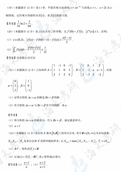 以上就是海天考研网为各位考生整理的2024考研数学三真题及解析汇总,仅限参考。持续为考研学子更新其他考研科目考研真题及答案解析,各位考生可以根据自身需要关注收藏,及时查看完整版2024考研真题及答案解析。